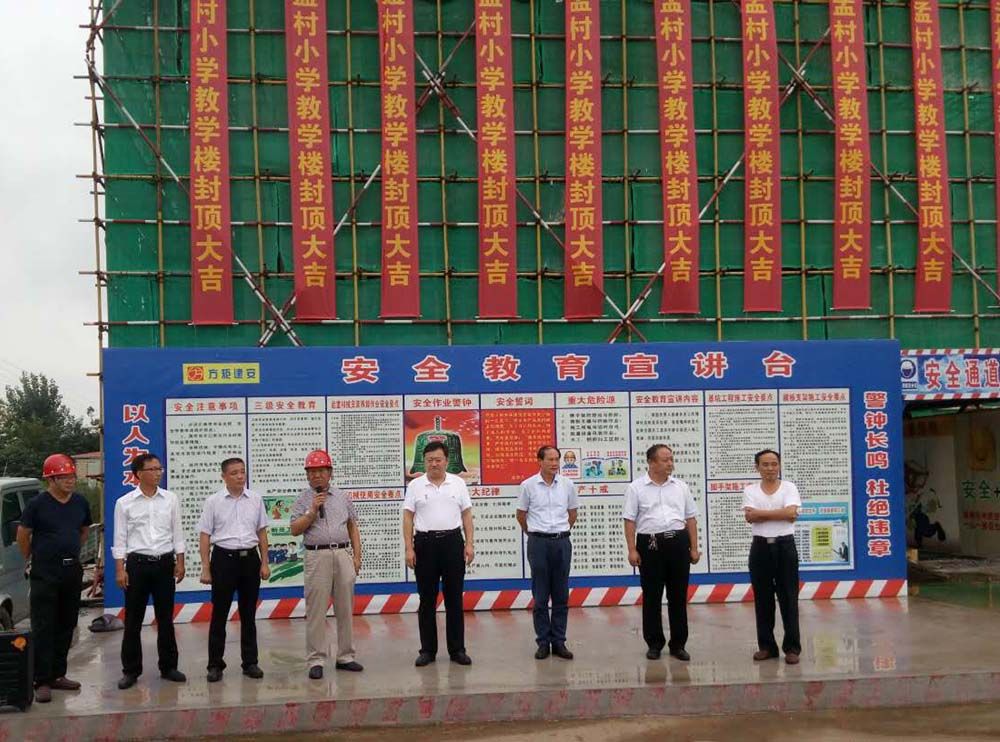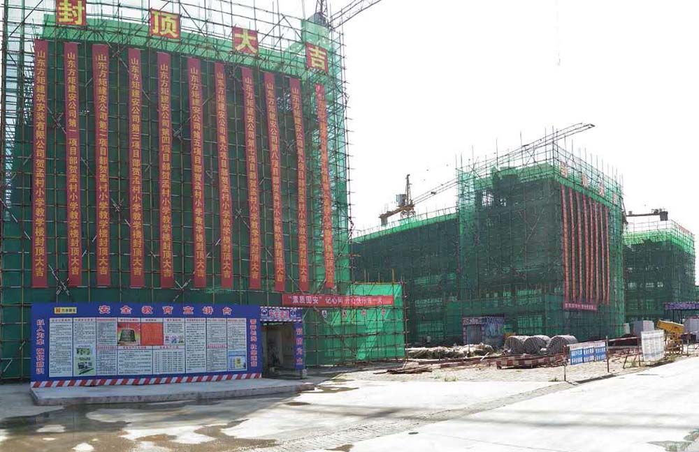 兗州之美,源于創(chuàng)城,校園綻放,靚麗彩虹。在全國第33個教師節(jié)即將來臨之際,兗州區(qū)教育系統(tǒng)解決大班額問題的又一重點(diǎn)工程項目,于9月6日在濟(jì)寧市兗州區(qū)新兗鎮(zhèn)孟村小學(xué)新建教學(xué)樓工程又添一景,伴隨著建筑工人熱火朝天的干勁,主體屋面一斗混凝土合頂澆筑完成,施工現(xiàn)場呈現(xiàn)出紅幅高掛、彩旗飄揚(yáng),鞭炮聲聲傳喜訊,絲綢飄飄送佳音,標(biāo)志著山東方矩建筑安裝有限公司中標(biāo)承建的孟村小學(xué)教學(xué)樓工程,施工主體如期完成階段性的建設(shè)任務(wù),得到了兗州區(qū)教體局、新兗鎮(zhèn)教委和學(xué)校建設(shè)方的一致好評,獲得了區(qū)質(zhì)量、安全監(jiān)督管理部門和工程設(shè)計、施工監(jiān)理等有關(guān)單位的高度贊譽(yù)。