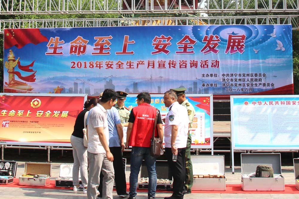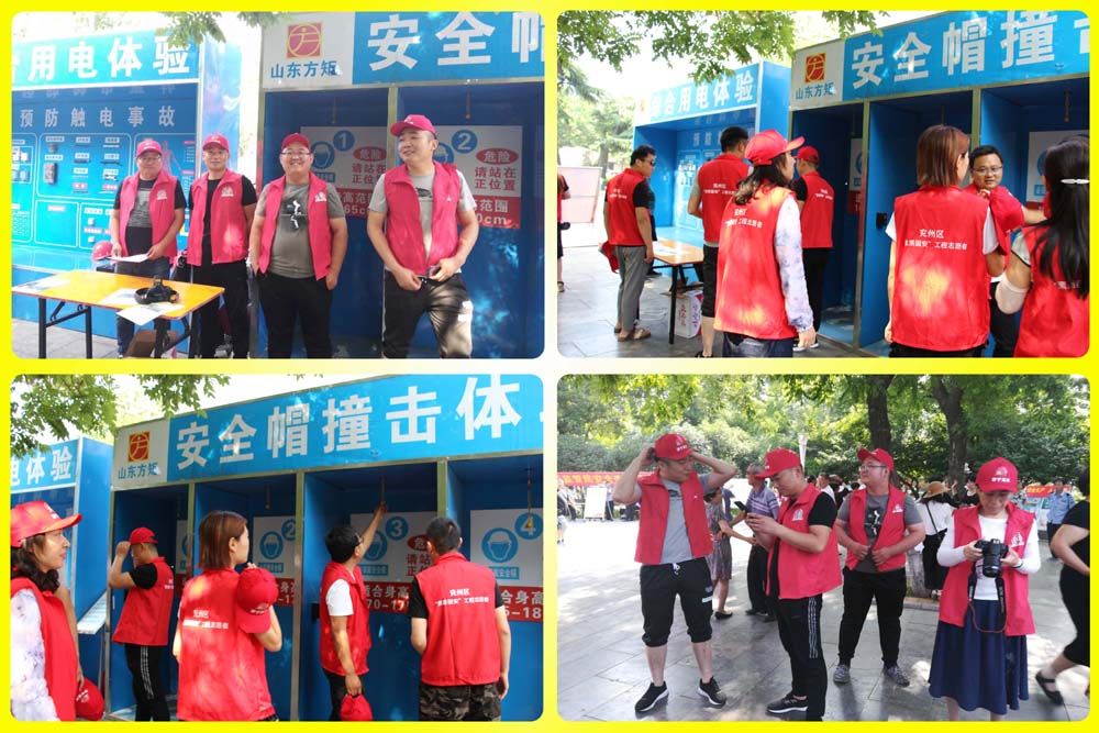由我方矩公司代表兗州區(qū)住建局、建管處設(shè)置的建筑施工安全生產(chǎn)主場展示區(qū),公司專職安全生產(chǎn)管理員、機電設(shè)備管理員、環(huán)境整治防塵員等關(guān)鍵崗位人員,他們身穿紅馬甲、頭戴小紅帽,人人都是素質(zhì)固安的志愿者,個個都是關(guān)注安全、關(guān)愛健康的護衛(wèi)者,他們知識博深、技藝精湛、演練精準,具有良好的建筑安全專業(yè)技能,社會實踐經(jīng)驗豐富的建筑施工安全生產(chǎn)管理團隊,通過擺放建筑安全生產(chǎn)展示板、講解國家安全生產(chǎn)法律法規(guī)、分送《居家安全使用手冊》、發(fā)放安全生產(chǎn)體驗須知等居家使用、喜聞樂見、豐富多彩的安全生產(chǎn)法律法規(guī)和安全常識,向廣大人民群眾面對面的交流、心貼心的溝通,零距離的解答群眾關(guān)心的安全生產(chǎn)問題,營造了你所關(guān)心的,就是我們關(guān)注的尊重生命、尊重健康的活動氛圍,把安全科普知識和專業(yè)技能演練,成為主場展示區(qū)安全生產(chǎn)文化傳播的大舞臺。